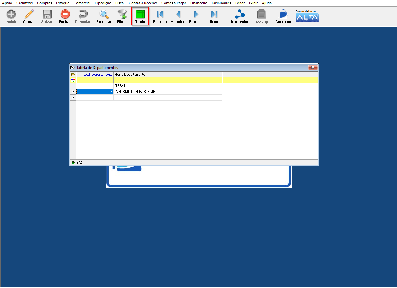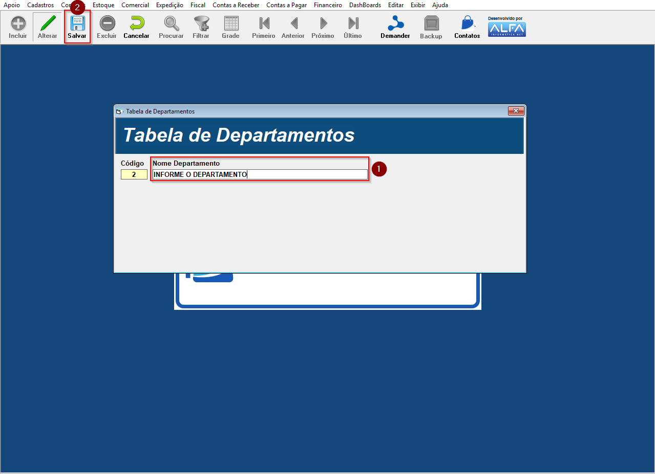 Departamento: Informe o nome do departamento que deseja incluir.