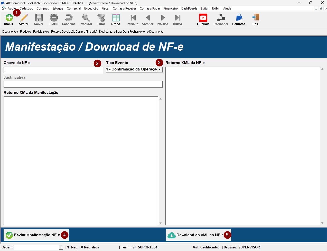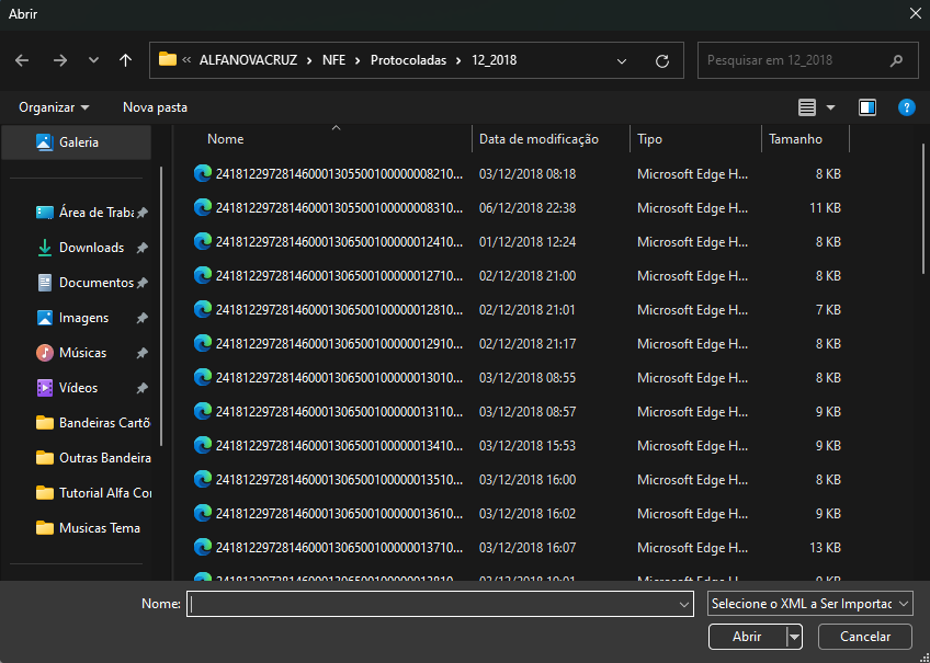 Obs. A pasta padrão do sistema fica na pasta (DFE) com a identificação (MesAno) correspondente do arquivo baixado. Ex: ...ALFACOMERCIAL\DFE\092024.